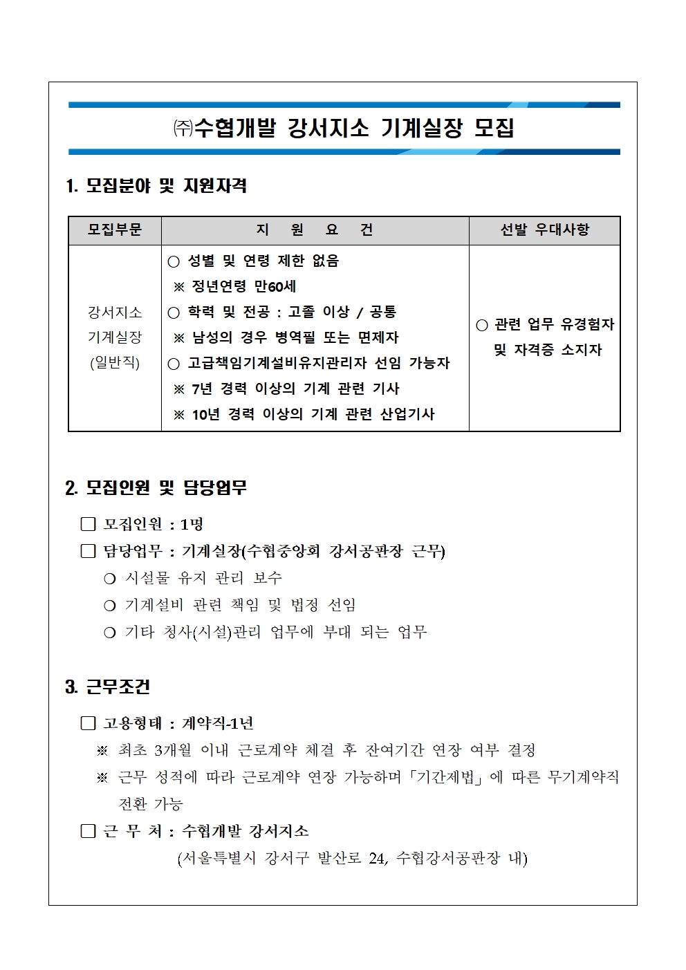 수협개발 강서지소 기계 실장 모집